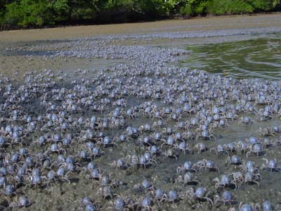 干潟に現れるミナミコメツキガニの大群