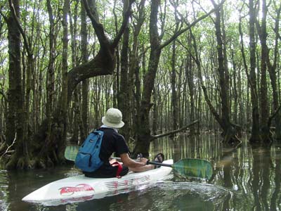 静かなマングローブでカヌー(