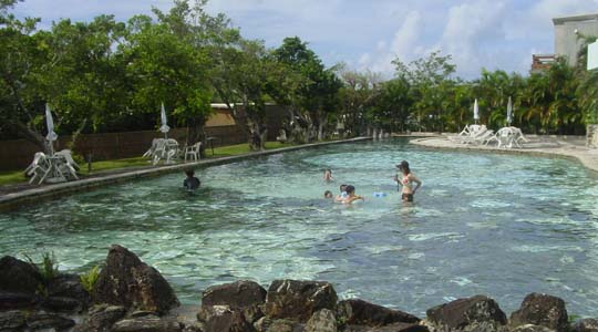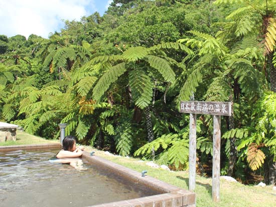 温泉天国の日本の中で沖縄は、温泉が出るところがとても少ない地域です。それでも八重山には亜熱帯の森の中に日本最南端の西表島温泉があります。 |
