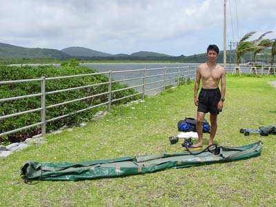 | 愛用のゴムカヌーを膨らます |