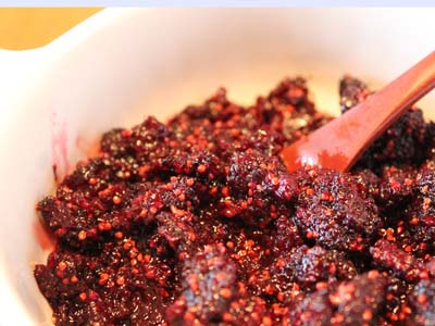 ただ桑の実を煮詰めるだけでも、美味しく出来上がります。 |
