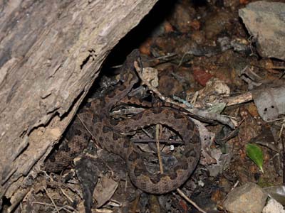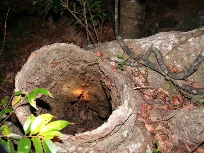 「蠢くもの」は林道沿いの乾燥した木では見つかりません。 |