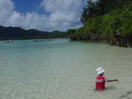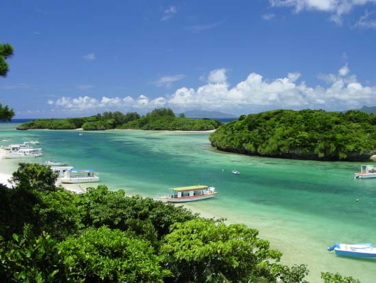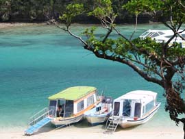 石垣島で1番の景勝地といえばここ川平湾。日本百景にも選ばれています。湾内には小さな島が点在し、季節、天候によって変化する海の色とで、美しい風景を作り出しています。このあたりは海の流れが速いため遊泳禁止区域です。しかし、船底がガラス張りのグラスボートが何社も出ており、簡単に色鮮やかな熱帯魚と珊瑚礁を観察することが出来ます。 グラスボートは大人1,000円 川平マリンサービス 0980-88-2335 どの業者でも値段は同じのようです |