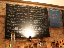 とうもろこしの粉を使った本格タコスやとうがらし、スパイスの利いたお料理、多数類のテキーラにメキシコビール等など…メキシコを楽しめます。