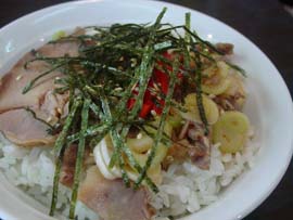 | 石垣島の中でおいしいと評判のラーメン屋がここ琉王伝です。豚骨と鶏骨、野菜でじっくり煮込み、鶏油を浮かべたコクのあるスープともちもちした食感の麺が絶妙な味を出しています。中でもお店の名前をとった琉王らーめん600円がおすすめです。男の人でらーめんだけでは物足りない人はサイドメニューのチャシューご飯などはいかかでしょうか?他にチャーシュー麺850円、塩らーめん700円、チャーハン600円、餃子500円などがあります。 |