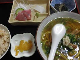 創業50年の老舗。店の建物は昔ながらの雰囲気を残し風情がある。具とダシは石垣島の豚肉を使用。夜は居酒屋のメニューあり。