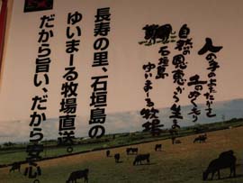 直営のゆいまーる牧場で育てた石垣産和牛。ステーキ、ハンバーグそして焼き肉、どの料理も堪能できる。