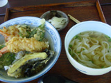 裏庭で採れた野菜と、きしめん