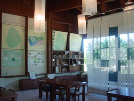 | 前は集落内にあった西表国立公園竹富島ビジターセンターが新しくなり、竹富港近くに移設されました。また名前もゆがふ館となってます。施設も充実しており、竹富島の伝統工芸から祭り、自然、観光名所まで細かく学べるようになっています。展示コーナーやビデオ上映もあり、港からも近いので、フリーで来た人は、ここで竹富島を知ってから島をまわると数倍楽しめますよ。国立公園内にあるビジターセンターは、施設が充実していて、入場無料なのがうれしいですね。 |
