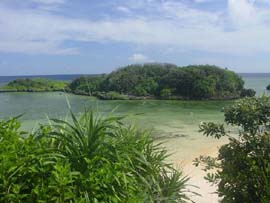西表島で簡単に熱帯魚と戯れることができるポイントがこの星砂の浜。前に見える島の手前でサンゴや熱帯魚が観察できます。このあたりは浅く、波も穏やかで流れもないので、子供や泳げない人も安心して楽しめます。(島の横や後ろは干満により流れが速くなります)そして、名前の通り、星砂が多い浜です。八重山では1番の星砂の含有率です。この星砂の浜を見下ろすことできるレストハウス星の砂では、食事やカキ氷、アイスのほかシュノーケル3点セットの貸し出しもやっています。近くには宿泊施設やキャンプ場もあるので、ゆっくり満喫できますね。