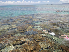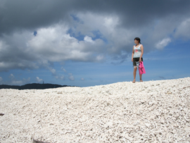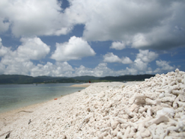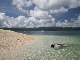| 西表島の上原あたりをドライブして、ふと海を見ると沖に真っ白に光るものがあります。こらがサンゴのかけらでできた島、バラス島です。このあたりは様々な種類のサンゴが見れて、シュノーケルやダイビングのポイントに最適です。自力では行けないので、各種ツアーに参加するのがいいでしょう。西表島発なら民宿アリウドの「鳩間島、バラス島コース」3名より催行で1人6,000円。(弁当、ドリンク2本付)。石垣島からの日帰りコースなら05年から始めた平田観光の「珊瑚に浮かぶ“バラス島”エメラルドに輝く“鳩間島」大人1名16,700円。バラス島は日影がないので、日焼け対策は入念に! |