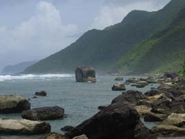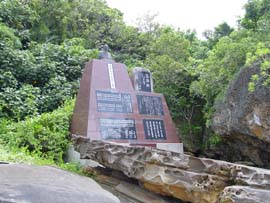 西表島の東部、車で行ける最終地点がこの南風見田の浜、2km以上も続く美しい砂浜です。トイレやシャワーが無いので、一般観光客はあまりここでは泳ぎませんが、キャンパーや長期西表滞在者には人気の浜です。山から流れ出る川が有り、ここをシャワー代わりに使います。この南風見田の浜を東に歩いて行くと忘勿石(わすれな石)があります。これは戦時中、波照間島からこの浜に強制疎開を強いられ、多くの人がマラリアで亡くなり、その当時の悲惨な体験を忘れないために建てられた石碑です。