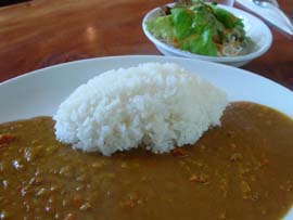 | おいしいカレーが評判のヤシの木。カレーは4種類、牛肉のカレー、チキンキーマカレー、クリーミーカレー(各735円)、ハッシュドビーフ(785円)、他にパステも人気メニューです。また、ヤシの木のオリジナルのお土産もとてもかわいく、特にてぬぐいはマンタや海の中、さとうきび畑の絵などあり、売れ筋商品です。お店の中も、人もとてもいい感じのヤシの木です。 |