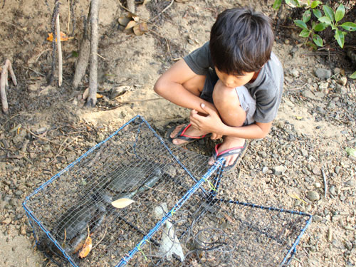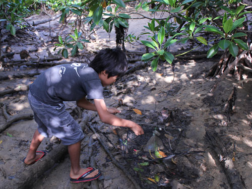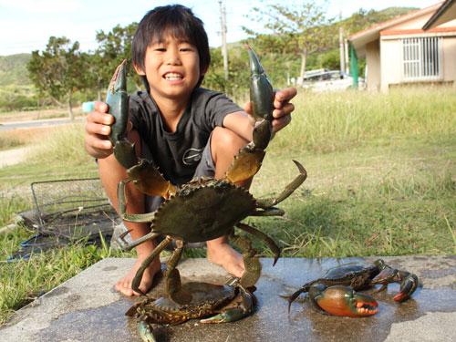 昨日仕掛けた3つのカニカゴを見に行くと、ノコギリガザミが5匹も掛かっていました。 3匹は超大型、2匹は普通の食べごろサイズ、今回この2匹はリリースし、超大型3匹は持ち帰り、後日カニ鍋にします。次はお弁当を持って於茂登岳へ。チャイロマルバネクワガタは去年、野底でいっぱい捕まえましたが、一昨年チャイロマルバネクワガタ裏年の2010年、偶然於茂登岳登山中に発見しました。あれから2年、今年、発生するか確認したかったのですが・・・