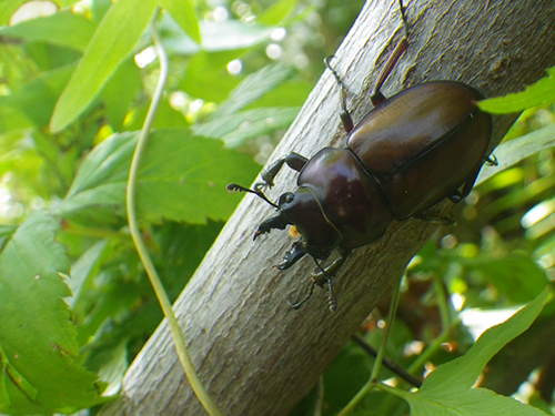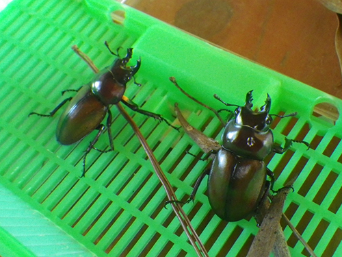 午前中、9:00〜12:30まで近所の野底林道に行ってきました。 探し始めて15分でチャイロマルバネクワガタを1頭、 続けて5分後にもう1頭。 2頭とも、ススキ原に生えるアカメガシワの枝先にいました。しかし 後が続かず・・・今日は2頭のみ。 内地から来ている虫友とお会い出来、いろいろ虫話を聞くことができました。 とっても楽しかったです。 チャイロマルバネクワガタは、例年よりは早いもののまだ、発生したばかりと思います。