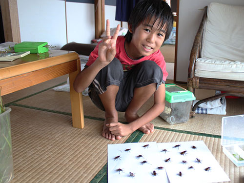 台風23号の動きがかなり遅く、本日午前中は風が強いものの、雨は降らず時より晴れ間も見えてました。ほんとは、子どもを連れてチャイロマルバネクワガタ採集の予定だったけど、「捕れるかわからないからジェイボーをする」とのことで、朝9時から一人で野底林道へ。最初の1時間は全く見つけられず、やっと見つけたやつをポロリと落としてしまい結局探せ出せずかなりショックでした。それから、風が当たらない側の斜面に移動!そこからは夢の様な時間が!「まさに今がピーク」といった感じ。5〜10分ごとに1匹の割合でみつかります。4〜5回ポロリしましたが、それを探すより他に移動したほうが確実に見つかる、そんな状況です。途中、子どもも呼んでいっしょにチャイロマルバネクワガタ採集。12時半までにオス19匹、メス2匹、計21匹。ポロリを入れたら3時間で25匹以上、確認しました。今日だけ見れば一昨年、凄く取れた年でしたがそれ以上でです。しかも、採集者は私達だけ!本当は虫友が来る予定でしたが台風23号の影響で来週に延ばしました。午後に入ると雨風が強くなり修了!子供と二人納得のチャイロマルバネクワガタ採集でした。