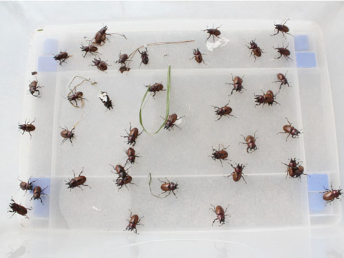 す。奥さんに文句を言われないように家事を手伝い、子供を学校に送り出し、自分で弁当を作って、いざ野底林道に向かいます。台風が過ぎ、気温が上がり林道は凄いことになっていました。チャイロマルバネクワガタ爆発中です。9時〜14時で50匹以上採集しまし
