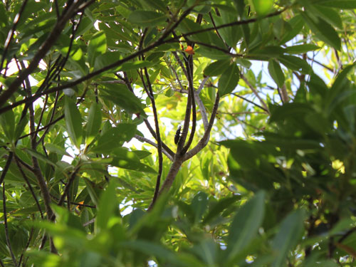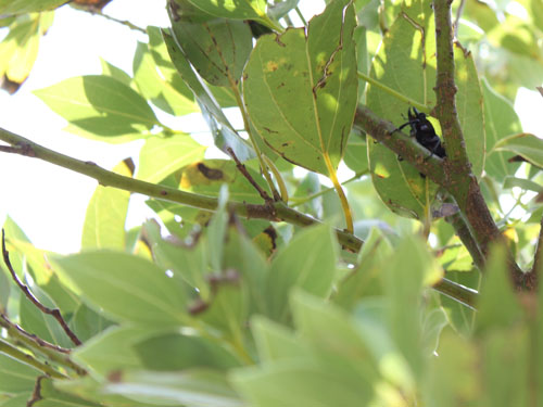 と枝の元の部分いました。ほとんど網でしか捕れないような高いところです。旨く網を下に置かないとポロリして見つかりません。撮影している間に落ちてしまうので今日は成果は10匹ほど。見つけたのは20匹ぐらいでした。