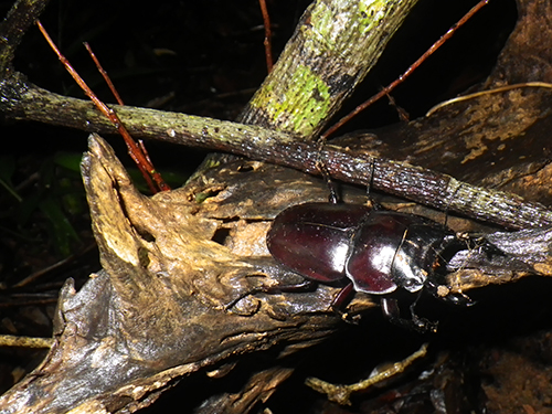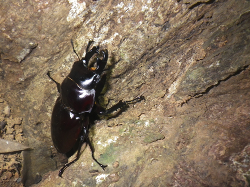 毎年来ている虫友のF氏が今年は家族で10日間の日程で石垣島に来島、その期間中4度いっしょに森へ行って きました。10月28日、屋良部林道ではオス4頭(F氏は64mm大歯をゲット)、10月30日、野底林道ではオス6頭(この日は静岡のY氏もいっしょで、3人揃ってひとり1頭づつ60mm大歯を確保)、11月2日、屋良部林道ではオス1メス1、11月4日、野底林道では大歯1頭59mm(11/2・4はh氏も参戦)、楽しいヤエヤママルバネクワガタ採集ができました。これで今年の森でのヤエヤママルバネクワガタ採集は
