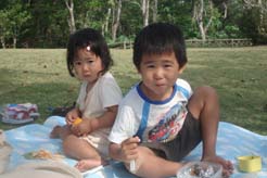 どんぐり拾いなら父ちゃんに任せて!昔、大きなどんぐり(オキナワウラジロガシ)をザルいっぱい拾った場所知っている。しかし、子どもはそのいっぱい拾える場所でなく、遠足で行ったバンナ公園を、家族に案内したいらしい。そらはそれで楽しそう。