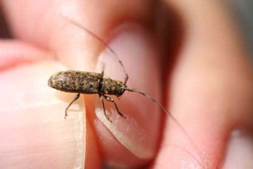 これも星野の農道で捕まえたカミキリ。多分シモフリナガヒゲカミキリだと思うけど。名前の通りヒゲが長く、捕まえた時そのヒゲがピンと前の方に突き出ていました。