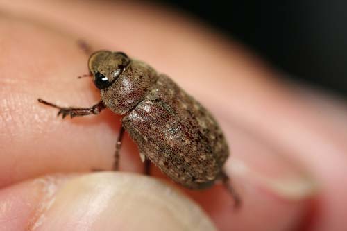 夜、虫を採る場所は、歩いて1分の公民館か、車で1分の小学校、車で2分の売店、そして、お家。このお家がなかなかよく虫が集まる。まわりは、サトウキビ畑で、そして山々が見渡せる。だから、外灯をつけておくと飛んでくるのだ。小さいカミキリやハムシ、ゾウムシは、だいたい毎日採れる。今日ははじめて見るシナコイチャコガネが飛んできた。