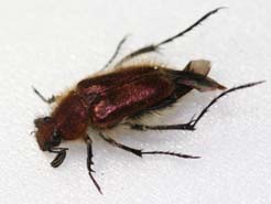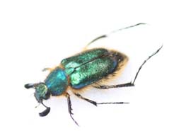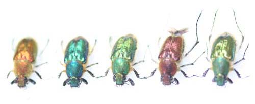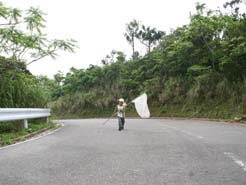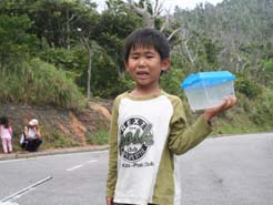 去年の12月10日以来、久々の更新です。虫好き親子と言ってもやはり冬の虫捕りはお休み。子供とは他の趣味、海辺で漂着物探し(マメとか、オウムガイ)などをしてました。3月に入り、石垣島の虫たちは動き出したようです。しかし年度末とあって、仕事やPTA活動、地域活動の用事が重なり大忙し、なかなか虫捕りに行けない状態が続いていました。3月21日、やっと少し時間が取れました。この時期に狙う昆虫といったら、もちろん「樹冠の宝石オオヒゲブトハナムグリ」です。2008年のオオヒゲブトハナムグリ採集は惨敗でした。一般的に2008年は、当たり年だったらしいのですが、私たちは今までオヒゲブトハナムグリを採集したことも、実物を見たことも無く、情報も少なく、まったく手がかりのないままに終わりました。そして、この1年間、2008年に捕まえ人のHPを見たり、石垣島在中でオオヒゲブトハナムグリに詳しい人に会って話しを聞いたりして、時期、時間帯、場所、習性を聞き、使う道具を揃えました。具体的には、3月下旬の晴れた昼ごろ、ヤンバルアワブキやその周辺の木のてっぺんあたりを飛び回る。そのため、長〜い捕虫網が必要だというので、8mのタモ網、そして、捕虫網と連結させる金具を購入しました。そして、3月21日、天気は晴れ、良さそうなコンディション。しかし、妻が風邪で下の子を見れなくなり、下の子を連れ、途中で内地から遊びに来ている兄を迎え、そして私と虫好きの長男の4人でいざ目指す林道へ。標高150m〜200mぐらいの林道をゆっくり走せながらヤンバルアワブキを探す。そして、その樹冠のあたりに虫が飛びまわってないかを注意深く見る。時間はお昼少し前。ある場所に来ると、そのヤンバルアワブキの上を凄い早さで飛ぶ虫を発見。そして、出初めのヤンバルアワブキの花やその周辺の花に止まる。オオヒゲブトハナムグリかは良くわからない。思ったより小さく、早く、そして良く飛ぶ。かと思うとピタッといなくなり、どこに行ったかわからない。とりあえず、8mの竿網で捕まえようとするが、虫は早いし、網は重いし、おまけに下の子は、「帰りたい」と父ちゃん(俺)に泣きながらしがみつく。ぜんぜん、捕まえられない。そこで3mの網に変え、時々頭上をかすめる者を捕まえることに。しかも俺では無く兄が・・・。30〜40分ほど格闘の末、1ぴきをゲット。みんなで網をのぞくと、やはり「樹冠の宝石オオヒゲブトハナムグリ」でした。色は緑。今まで捕れずに泣きっ面だった長男は、急にハイテンション!下の子もおにぎりを食べて落ちつき、兄にもなれ、俺が捕虫網を握れるようになり3匹ゲット。長男も止まっていたヤツを1匹捕まえて大満足。色は緑2、赤1、黄色1、青緑1と色々なバリエーションが採れ、全部で5匹だったけど、納得のオオヒゲブトハナムグリ採集でした。