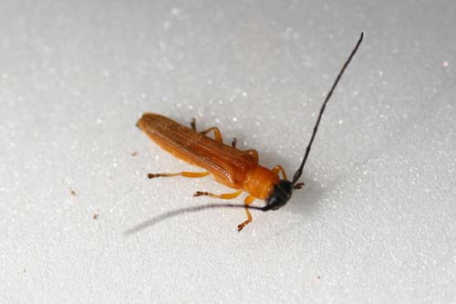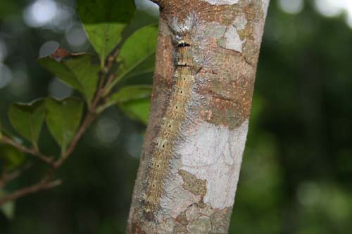 去年の秋、石垣島の昆虫に詳しい人と吉原の防風林を歩いた。そのとき、ある木の葉を指差して、「これは、カミキリの食痕です。」と教えてもらった。その木がタブノキで、そのカミキリは、イシガキリンゴカミキリ、「春にはきっとまたこの木の葉を食べに集まります。」と言っていた。そして、そのイシガキリンゴカミキリの季節がやって来た。早速、子供と行ってみる。秋とは様子が違い、どらがタブノキがよくわからず、それらしき食み痕を子供と上を見ながら探し続けるとやっと1ひき見つけることができた。その後、工事が終わって開通した屋良部林道に行ってみると、オヒゲブトハナムグリ狙いの人が10人ほどいて、みなさん成果は、1〜3匹ほど。私たちは春に出てくるカミキリ、ムネモンウスアオカミキリ、マツダクスベニカミキリ、ヤエヤマヒオドシハナカミキリを探したが手がかりは無し。途中、子供がクヌギカレハの幼虫、コチラではヤマンギと呼ぶ毛虫を発見。(山に入るときに一番注意する生物のひとつ)