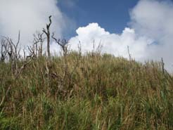 今年もチャイロマルバネクワガタの季節がやってきました。チャイロマルバネクワガタは、1年置きに大発生と小発生を繰り返し、近年は奇数年に発生が多いそうです。去年は10/10に7匹、10/13に4匹、10/20に3匹、10/24に1匹の15匹捕まえ、全てオスでした。今年は裏年にあたり、あまり期待ができませんが、1匹だけども確認したいところです。そんな訳で、去年と同時期に仕事の休みをとって、一人でチャイロマルバネクワガタを探しに行ってきました。場所は去年と同じく野底林道です。昨夜まで雨が降っていましたが、朝にはあがり、まずますの天気です。子供を幼稚園に送ったあと、8時30分から捜索開始。まずは去年1番多く見つけたススキ原を重点的に見てまわります。しかし、全く気配なし。それでは、2番目に多く見つけたススキ原。んー、こちらも無し・・・11時30分までの3時間、くまなくススキ原を探しましたが手がかり無し。もちろん、飛んでる気配も無し・・・。おにぎりを食べ、もう1度同じところを見て周る。結局、3時30分まで7時間歩きまわり成果無し。やはり、裏年だからでしょうか?去年、数名見かけた採集者も今日は一人も会いませんでした。
