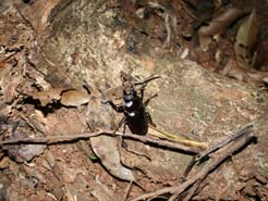 子どもが寝た後、1時間ぐらい今年8回目のヤエヤママルバネクワガタ採集に行って来ました。去年ヤエヤママルバネクワガタを4匹捕まえた忘れられない木、今年は発生しないのかなぁ〜と見守っていました。この木は、根元と2m程の高さに洞があります。去年は全て根元の洞から発生しました。今日のぞきに行って見ると、根元にはいず、上の洞にメスが1匹いました。後、他の木でちっこいオスを見つけました。今回、林道にレンタカーが2台止まっていました。他の方のヤエヤママルバネクワガタ採集報告が楽しみです。