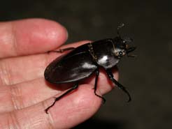 12/10は、会社の忘年会でした。でも、私の家から街まで遠いので、行き帰りは車、お酒は飲めません。夜12時で終了。今日は月がきれいでしかも暖かい。多分夜でも20℃ぐらいある。そんなわけで、家に帰る途中、ちょっとダメもとで浦底林道によってみました。林道を走って僅か5分、道路の真ん中に黒く動く物体。多分ゴキブリだろうと思いつつ、降りてチェック。なんと、小さいけどヤエヤママルバネクワガタのメスでした。まだ、いたんだぁ〜!今年これで、ヤエヤママルバネクワガタは20匹目。これで最後かなぁ〜