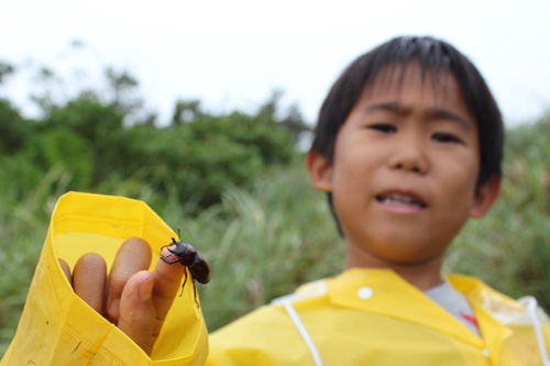 沖縄本島から虫友が来たので、いっしょにチャマル採集に行ってきました。 朝から曇りで、友達が伊野田に着いた時は大雨。 雨がやむ合間をぬって、チャマル探し。 一番いそうなポイントで、私が1匹、虫友が2匹 僅か30分の間に見つけ出しました。 昼には、また大雨。 今年もチャマルは健在のようです。