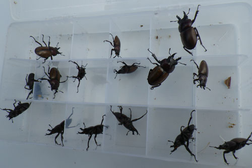 今日は、毎年恒例一人本気でチャイロマルバネクワガタ探し。 朝、8時〜16時まで8時間森にいました。 午前中、13匹 午後、15匹 計28匹確保、内メスは1匹のみ .。久しぶりに虫に詳しい知り合いに会いました。 私的には今年は当たり年と思ったのですが、 平年並みだそうです。 2時ぐらい、結構飛んでいるチャイロマルバネクワガタがいました。 飛んでいるチャイロマルバネクワガタは大きいそうです。