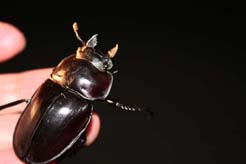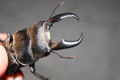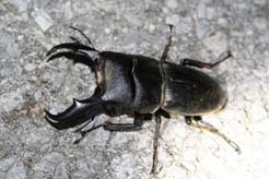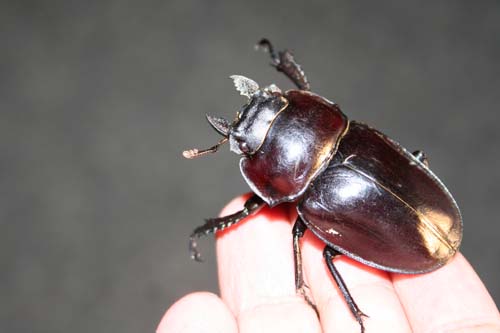 それなら、浦底林道へ。時速30kmで走っていると、ハサミを持った黒い影・・・でもなんだか違う。車を降りて確認すると60mmぐらいのサキシマヒラタクワガタ。まだ、がんばって生きていたんだ〜長生きしろよ!と声を掛け、写真を撮って森へ逃がす。サキシマヒラタクワガタは、6月に捕まえたやつが、まだお家で元気に暮らしている。