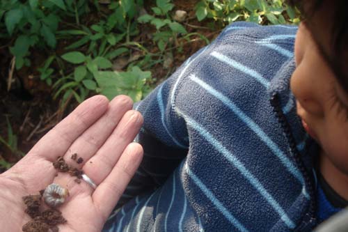 先月、晴れた日に野底林道へ行ってから今日までの一ヶ月、ほとんど小雨模様の天気の悪い日が続きました。毎年、この時期の石垣島は、雨の日が続きますが、今年は特に多い。今日のお休みは、久々の晴れです。午前中、ずっと干せなかった布団を干し、庭に滑り台や手製のブランコ、脚立を出して遊びましたが、午後からは、森へレッツゴー!この時期、昆虫たちはまだ幼虫なのだと知った子どもは、どうしても土を掘って幼虫を見つけたいらしい。それなら、夏にクワガタを捕まえた木の下を掘ってみることにした。期待通り2cmぐらいの幼虫が6ひき、子供とクワガタの幼虫ならいいねと飼って見ることのしました。それから、森や林道を歩き、久々森でリフレッシュの親子です。