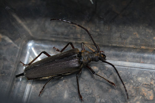梅雨から夏にかけてのライトトラップは、色々なカミキリが獲れるのでとても楽しい。しかし、息子は運動会の練習で疲れていたり、私も仕事が忙しかたっり、雨だったり、晴れても月夜だったりと、なかなか行けない日が続く。そして、やっとこ、今年初めてのライトトラップ。大物が来るといいなぁ。しかし、待てど待てどお目当ての虫は飛んで来ない。9時過ぎ、もう帰ろうと思った矢先、コカブトが飛来。これは、なかなか嬉しい。そして、待ちに待った大物カミキリが飛来。ヤエヤマウスバカミキリである。ライトトラップは、大体一日に大物一匹の確立。これで、子ども私も安心して帰路に着いた。